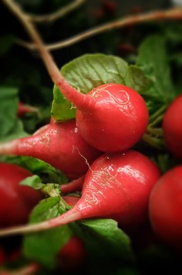 - Radishes - We slice thin and add to salads. Mucous dissolver, diuretic.